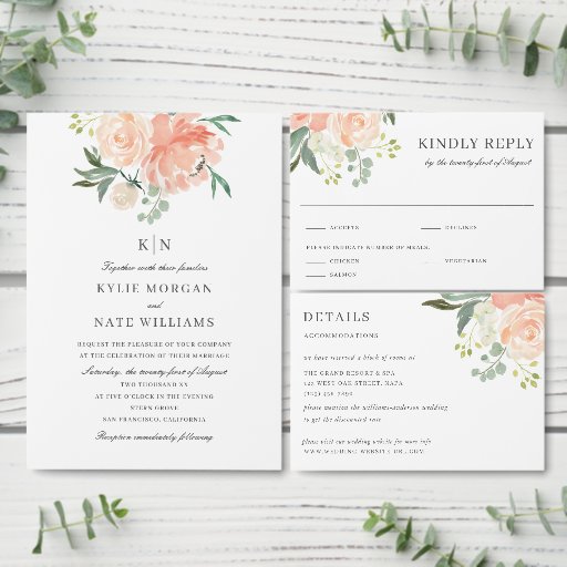 WEDDING | Soft Peach Floral MonogramCriado por Kerry Doyle