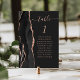 A borda esquerda desta elegante e moderna placa de número da mesa de casamento apresenta uma coloração aquosa preta, borda cortada com falso rosa dourado. A palavra "mesa" aparece em um script de escrita manual cor-de-rosa-rosa num fundo fora de preto. Adicione os nomes dos seus convidados que estão atribuídos a cada mesa.