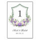 Estes bonitos monogramas de cor d'água roxa e cartões florais brancos da mesa de núpcias são perfeitos para a sua recepção de casamento! A crista é elegante e romântica. Coloque-os em todas as mesas do seu local para que os convidados possam encontrar a mesa que foram atribuídos à festa. É tão fácil fazer com que essas cartas sejam suas. Basta selecionar Personalizar este modelo e digitar suas informações e o número da tabela e adicionar ao carrinho. Repita o procedimento para quantas mesas você terá na sua recepção.
