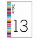 Cartões modernos de números da mesa de casamento com faixas de serape de cor de primavera.