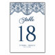 Adicione este sotaque de local à sua capa de tabela de eventos com estes números de tabela personalizáveis. Apresenta rendas botânicas azuis de brocade. Personalize adicionando nomes, data, hora, local e outros detalhes. Esta elegante placa de número da mesa de renda é perfeita para casamentos, chás de panela, aniversários e muito mais.