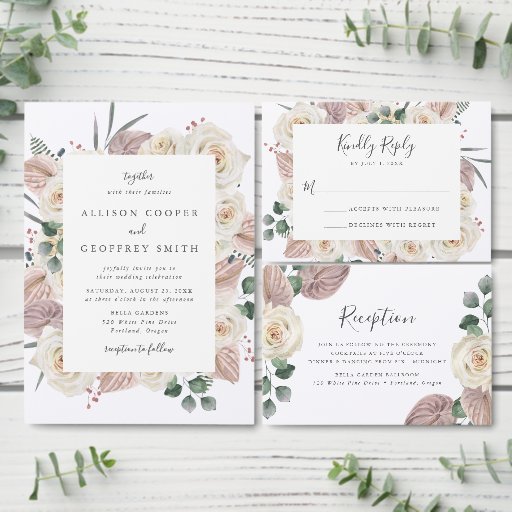 Cartões florais e elegantes, com o número da tabela, seus nomes e data de casamento moldados por rosas brancas cremosas, orquídeas cor-de-rosa-pincel e mauve, folhas e folhagem verdes. O design repete-se no lado oposto. Projetado para coordenar com nossa coleção de casamento de Rosas de Aquarela e Orquídeas. Para solicitar este design, personalize os números de tabela um a um e adicione ao carrinho individualmente.