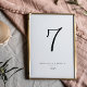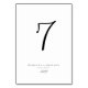 Um design de dois lados tem um simples script de caligrafia preto e branco único e minimalista com sotaque de folha botânica. Adicione facilmente o número, o nome e a data a tantos cartões de mesa quantos você precisar. certifique-se de adicionar cada cartão ao carrinho antes de comprar.