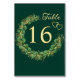 A emerald verde e ouro eucalipto wreath e corações enfeitam este cartão numérico de mesa em ambos os lados. Esta design está sobre um fundo verde esmeralda. O modelo facilita o tipo de qualquer número de tabela antes de fazer o pedido.