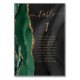 A borda esquerda desta elegante e moderna carta de números da mesa de casamento apresenta uma esmeralda verde aquarela agate borda com falsa brilho dourado. A palavra "mesa" aparece em um script de escrita manual dourada em um fundo de aquarela preta. Adicione os nomes dos seus convidados que estão atribuídos a cada mesa.