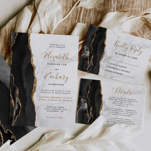 Black Gold Agate White Marble Script Wedding SuiteCriado por Akhates Designs