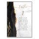 A borda esquerda desta elegante e moderna placa de número da mesa de casamento apresenta uma borda de agata preta aparada com falsa brilho dourado. A palavra "mesa" aparece em um guião de escrita dourada sobre o numb da mesa em itálico dourado sobre fundo de mármore branco e cinza prateada. Adicione os nomes dos seus convidados que estão atribuídos a cada mesa em uma fonte de impressão preta.