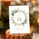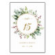 Esta placa de número da mesa de casamento apresenta cor d'água eucalipto, folhas verdes, bagas vermelhas, ramificações de pínus e uma falso estrutura de círculo dourado. Para personalização mais avançada deste design, clique no link "Personalizar mais". Itens correspondentes também estão disponíveis.