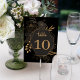 Elevem seu espaço de casamento com nossos Números de Tabela de Casamento Floral Preto e Dourado, uma fusão perfeita de sofisticação e romance. Apresentando intrincados designs florais em ouro opulente contra um fundo preto eterno, esses números de tabelas adicionam um toque de glamour ao seu decoro de recepção. Torne cada mesa singularmente memorável com esta elegância e charme botânico.