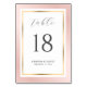 Cartão de número da tabela de casamento cor-de-rosa e dourada com texto em uma fonte moderna. Itens correspondentes disponíveis.