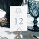 Estes cartões de números de mesas de Monograma Tradicional Crest Blue Floral Elegante de Casamento apresentam uma elegante crista monográfica botânica formal com delicadas vinhas e sotaques florais, com um estilo de chinoiserie barroca que é perfeito para a sua recepção de casamento de luxo inspirada vitoriana.