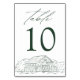 Cartões de números de tabela de celas russas com uma ilustração esboçada de um celeiro verde e floresta no fundo do design com fundo branco. A "Mesa" aparece na caligrafia verde elegante com o número da tabela abaixo. Design repete-se no lado oposto. Para solicitar as placas de mesa, basta adicionar cada número ao carrinho individualmente e fazer check-out quando você terminar. Projetado para coordenar com a nossa coleção de casamento Rustic Barn Elegante.