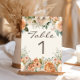 Pêssego elegante e cor d'água creme floral e verde número de tabela de recepções de casamento botânicas de cor d'água com fundo creme/branco.