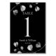 Um cartão de número da mesa de casamento de eucalipto em tons de preto e cinza prateado que pode ser personalizado com qualquer número de tabela. Os gráficos aparecem em ambos os lados desta placa.