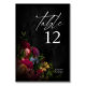 Leve os arranjos florais em cores brilhantes e quentes, que vão do coral e do rosa rosa a ouro amarelo, combinam-se com fundos vigiados e obsidianos para dar às peças desta elegante suite de casamento uma ambência escura e modesta. Este cartão de número da mesa de casamento mostra uma borda de flores de canto inferior com "mesa" em uma caligrafia impressionante, junto com seus nomes e data de casamento em branco. Procure ID829 para ver a coleção completa.