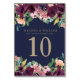 Numeração De Mesa Casamento Floral de Borgonha com Marinho de Aquare