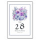 Número do cartão de mesa floral de prata, azul gelado e lilac. Ideal para um casamento no jardim.