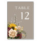 Cartão de Número de Tabela de Casamento Floral Elegante Taupe