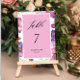 Mande seus convidados em estilo com este elegante número da mesa de casamento flexível rosa! Apresentando delicadas flores de aquarela em matizes cor-de-rosa suave, fontes sofisticadas de script e um layout clássico e fácil de ler, este design de número de tabela é perfeito para casamentos românticos, jardins ou clássicos. Perfeito para casamentos, chás de panela e eventos elegantes, esses números de tabelas adicionam um toque coeso e na moda ao seu decoro de recepção.