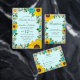 Casamento russo com girassóis vibrantes, margaridas brancas tradicionais e flores lacrimogêneas contra um fundo aquoso leve com sopro de bebê e acentos botânicos verdes