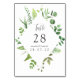 Cartões de número de mesa de casamento com eucalipto (chorão, bebê e dólar de prata), jasmim, hera e samambaias com tipografia manuscrita projetada para ser personalizada rápida e facilmente de acordo com os detalhes do seu evento.