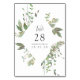 Cartões de número de mesa de casamento inspirados em elementos orgânicos com moldura geométrica projetada para ser personalizada rápida e facilmente de acordo com os detalhes do seu evento.