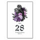 Cartões de números de mesas de casamento gótica, vintage, vegetal, em sotaque roxo, personalizável para suas especificidades de evento.