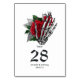 Número de mesa de casamento gótico de caveira floral vintage caprichoso em tons de vermelho personalizável para os detalhes do seu evento.