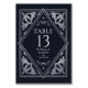 Design de casamento elegante e moderno inspirado num cartão de tarô. Note que a prata do convite NÃO é uma folha real e é impressa em cores planas. Os itens são impressos exatamente como aparecem na tela quando você os adiciona ao carrinho, então personalize e adicione cada número de tabela que você precisa ao carrinho individualmente. Correspondência de Itens em nosso compro para um tema completo de festa.