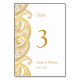 Números de mesas de casamento indígenas com designs de paisley dourado. Excelente de casamentos tradicionais e outros eventos especiais.