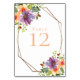 Romance se resume a este cartão floral de mesa de casamentos com cor d'água, contendo pêssego, roxo e flores verdes