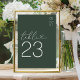 Números de mesa de casamento verde minimalista com suas iniciais no canto superior direito, a palavra 'mesa' em uma fonte de escrita elegante que incorpora um coração de amor e o número.