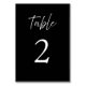 Bem-vindos aos seus convidados às suas mesas com as nossas cartas de números de mesas de casamento modernas e na moda. O elegante script manuscrito branco e os números clássicos de estilo em um fundo preto é uma opção perfeita para casamentos formais. Você também pode alterar as cores do texto e do plano de fundo para corresponder ao seu tema. Torne o seu dia especial ainda mais memorável com estes bonitos cartões de números de mesa. Peça a sua hoje e adicione um toque de elegância à sua decoração de casamento!