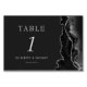 A borda direita desta elegante e moderna carta de números da mesa de casamento apresenta uma coloração aquosa preta, aparada com falso brilho prateado. O texto personalizável combina fontes de serif romana de cinza prateada, itálico e de placa de impressão em um fundo fora do preto.