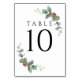 Este elegante Sinal de Número de Tabela de Casamentos no inverno faz parte do Conjunto de Casamentos no inverno. Apresentando lindas folhas de eucalipto, ramos sagrados e bagas. Basta adicionar seus detalhes. Para personalizar o design, clique no botão 'Editar/Personalizar'. Elementos complementares disponíveis.