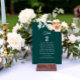 Número da Tabela de Casamentos outono do Plano de Mesa Laranja Queimada em Teal Elegante. Os hóspedes elegantes sentam o número da mesa do plano com uma casca escura com flor de cor de laranja queimada e um roteiro elegante, o dia da decoração do casamento para casamentos do outono. Fácil de personalizar o modelo, adicionando a lista de convidados e o número da tabela.