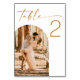 Guie seus convidados com estilo usando este cartão personalizado de número da mesa de casamento de dupla face. Apresentando uma tipografia ousada em um marrom-mostarda rico e um quadro fotográfico moderno, este design permite mostrar duas fotos diferentes - uma de cada lado - para um toque significativo e pessoal. Perfeito para casamentos, recepções, jantas de ensaio e comemorações de aniversário, esses números de tabelas combinam funcionalidade com valor de manutenção, permitindo que seus hóspedes admirem suas fotos favoritas enquanto encontram facilmente seus assentos. A paleta de cor castanha da mostarda quente a torna especialmente adequada para casamentos no outono, temas quânticos rústicos e para eventos elegantes da terra.