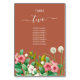 Uma bela design de casamentos de flor silvestre e Periwinkle. Um design único que usa floral botânico da safra rustica. Um elegante design retro floral de terracotta laranja queimado com um traço de verde. Uma mesa de casamento de flor silvestre e Periwinkle com elementos modernos. Os convites de casamento e outros artigos de papelaria também estão disponíveis. Personalize o número e adquira cada número mesa individualmente de acordo com quantos números de tabela você precisa.