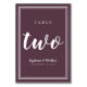 Esta design foi criada para comemorações íntimas de casamento. A simples, minimalista e elegante design da Mesa Núm. 2 apresenta um design contemporâneo com uma dupla borda em branco nítido sobre um dramático fundo roxo moderno. O design de chic oferece eterno, mas sofisticação moderna. Personalize a design de mesa de casamento com seus detalhes de casamento em letras brancas nítidas e roteiro. A parte traseira da placa é uma duplicata da parte frontal. Encomenda um para cada mesa com os números de tabela individuais. O Mesa ONE to TEN foi projetado individualmente e está disponível na minha loja InvitationSuites no Zazzle. Embora tenha criado especificamente a um local menor, se precisar de números adicionais, envie-nos um e-mail para InvitationSuites@gmail.com.