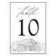 Cartões de números de tabela de celas russas com uma ilustração esboçada de um celeiro e floresta no fundo do design com fundo branco. A "Mesa" aparece na caligrafia elegante a preto, com o número da tabela abaixo. Design repete-se no lado oposto. Para solicitar as placas de mesa, basta adicionar cada número ao carrinho individualmente e fazer check-out quando você terminar. Projetado para coordenar com a nossa coleção de casamento Rustic Barn Elegante.