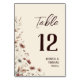 Torne fácil para seus convidados encontrar suas mesas com estas simples, mas elegantes, placas de números de tabela. Eles apresentam um design de tona cônica rústica de bolo com um spray de flores silvestres em tons de terracota e rosa poeirento em um marfim ou fundo cremoso. O título está escrito em letras elegantes e o texto correto e justificado dá-lhe uma vibração moderna contemporânea.