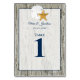 Estes cartões de números de mesas mariscos são perfeitos para um casamento de praia náutica. A design apresenta um quadro de madeira derivada, acentuado por um dólar de areia e estrelas-do-mar em um canto.