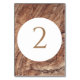 Este design apresenta um fundo de madeira rústico. O simples fundo de madeira marrom é complementado pelo texto branco e pelo moderno elemento do círculo central limpo que rodeia o título. Os tons castanhos dos grãos de madeira criam uma sensação rústica de jardim florestal rural. Elegante número da mesa de casamento com elementos modernos. Os convites de casamento e outros artigos de papelaria também estão disponíveis. Personalize o número e adquira cada número mesa individualmente de acordo com quantos números de tabela você precisa.