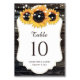 Cartão de número personalizado de madeira rústica e de mesa de casamento de girassol. Itens correspondentes disponíveis.
