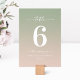 Números Simples De Mesa Verde E Recepção de casamento De Folha De Ombre Janta Números De Tabela. Esta moderna placa de Mesa chic é simples, clássica e elegante, com um sutil desvanecimento do gradiente ombre e uma bonito letra de escrita de assinatura com caudas. Mostrada na nova estrada. Disponível em várias opções de cor ou não se sinta à vontade para editar as cores no editor (clique em personalizar mais enquanto personalizar). Para ver mais, procure as coleções de casamento de 2022 da Chic Paperie para ver todas as tendências de designs e cores de casamento para este ano.