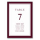 Este elegante e minimalista número da mesa de casamento de fronteira apresenta uma clássica borda dupla de burgundy com texto e script burgundy.