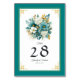 Numeração De Mesa Casamento Teal e Dourado Floral