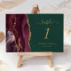 A borda esquerda desta elegante e moderna placa de número da mesa de casamento apresenta uma borda de cor-d-água borrifada, aparada com falso brilho dourado. O texto personalizável combina manuscritos dourados e fontes itálicas e em prato em um fundo verde esmeralda.