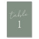 Elegante e simples, este cartão verde de sage é perfeito para casamentos românticos refinados. Apresentando uma tipografia minimalista e um tom botânico suave, é fácil personalizar — basta mudar o número, adicionar ao carrinho e repetir para cada mesa. Ideal para temas de casamento rústicos, jardins, boho, ou modernos, esta design adiciona um toque coeso e na moda à vossa decoração de recepção.