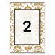 Este design apresenta um padrão elegante de vintage dourado. O texto preto é enquadrado com uma borda preta e fundo branco opaco. O padrão de ouro damasco fica elegantemente ao fundo. A combinação das cores preto e dourado cria um estilo sofisticado, modesto e chic. Elegante design da mesa de casamento com elementos modernos. A configuração simples da tipografia lhe dá um estilo distinto. Os convites de casamento e outros artigos de papelaria também estão disponíveis. Personalize o número e adquira cada número mesa individualmente de acordo com quantos números de tabela você precisa.